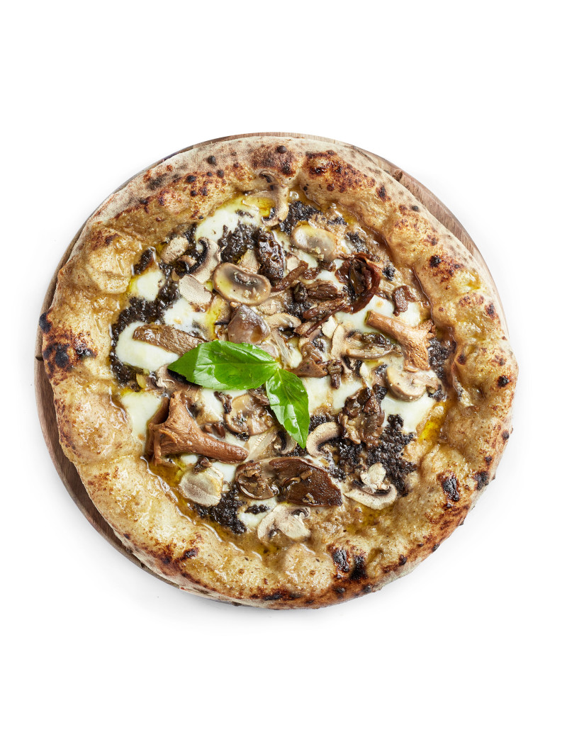 Base créme de champignons et truffe , mozza, poêlée de champignons, persillade, huile extra vierge